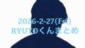 2026年2月26日(木)のRYUTOくんSNSまとめです。